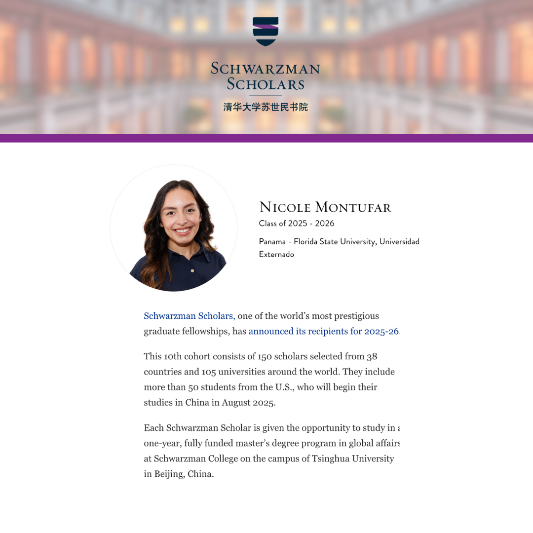 Actualmente, soy Schwarzman Scholar, parte de un programa de maestría en Asuntos Globales en la Universidad de Tsinghua en Beijing, China —considerada una de las becas más prestigiosas del mundo por su nivel de exigencia, enfoque en liderazgo y excelencia académica. Llegar ahí no fue fácil, pero fue el resultado de años de preparación, impacto y propósito.